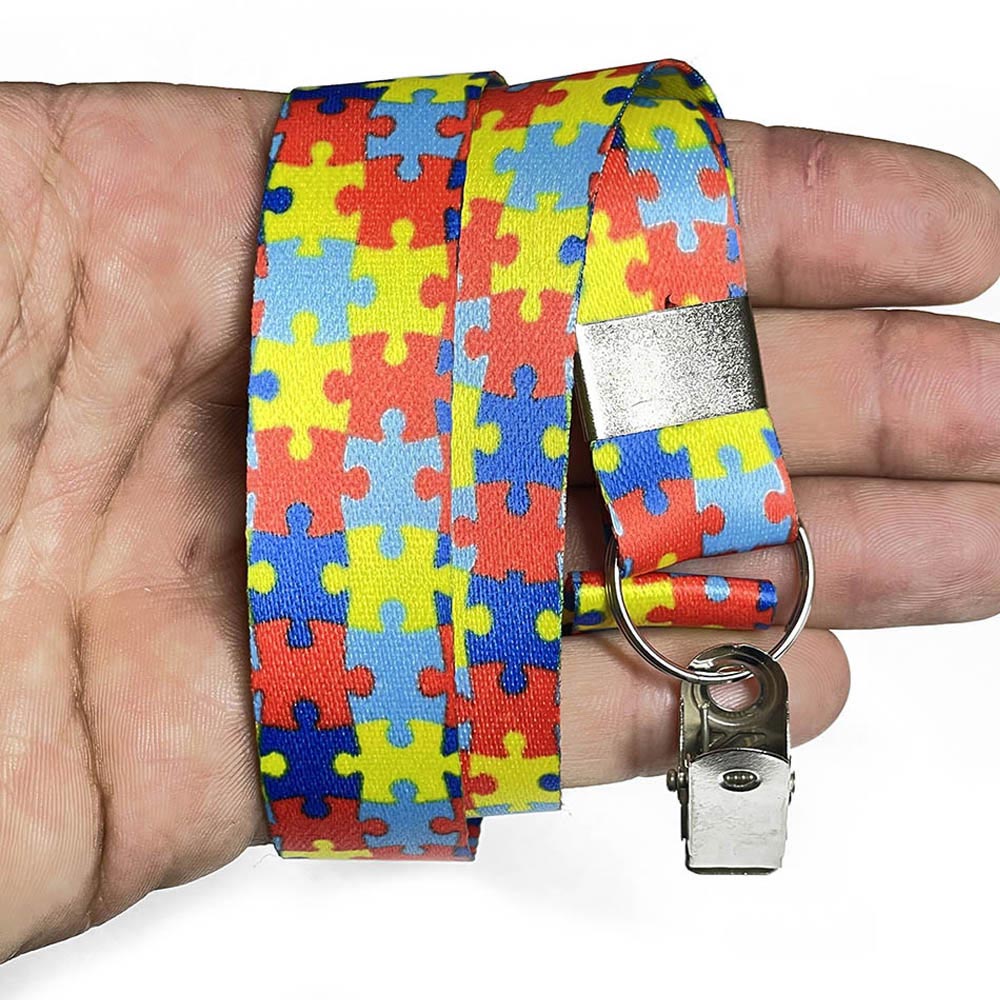 O cordão do Autismo com a estama QUEBRA CABEÇAS é uma maneira simples de identificar o seu filho. Como o símbolo do autismo é reconhecido mundialmente, as pessoas saberão que seu filho precisa de uma atenção diferenciada. Possui trava de segurança que se rompe sob pressão, evitando dessa forma um acidente por sufocamento. Já o cordão com a estama GIRASSOL que também é reconhecido internacionalmente e aceito em portos e aeroportos também serve para identificar pessoas que tenham deficiências ocultas, bem como a seus acompanhantes e atendentes pessoais.